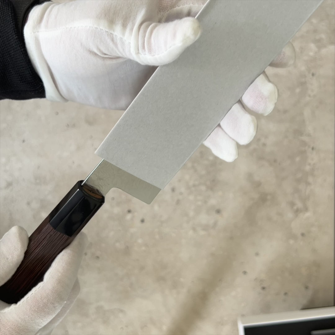 The Ryuhyo SG2 Damascus Migaki Gyuto 210mm is a versatile and refined tool designed to elevate every chef’s cutting experience with exceptional sharpness, balance, and craftsmanship.